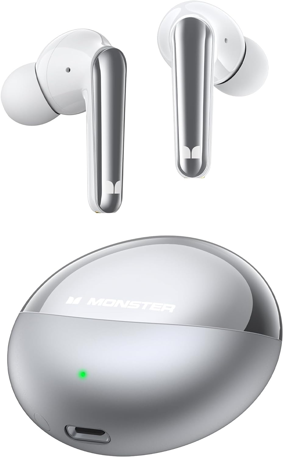 Monster N-Lite 203 AirLinks Wireless Earbuds, Bluetooth 5.3 Headphones HiFi Stereo, Crystal Clear Call, 30H Playback, Type-C Charging, IPX6 Waterproof Wireless in-Ear Earbuds, Silver