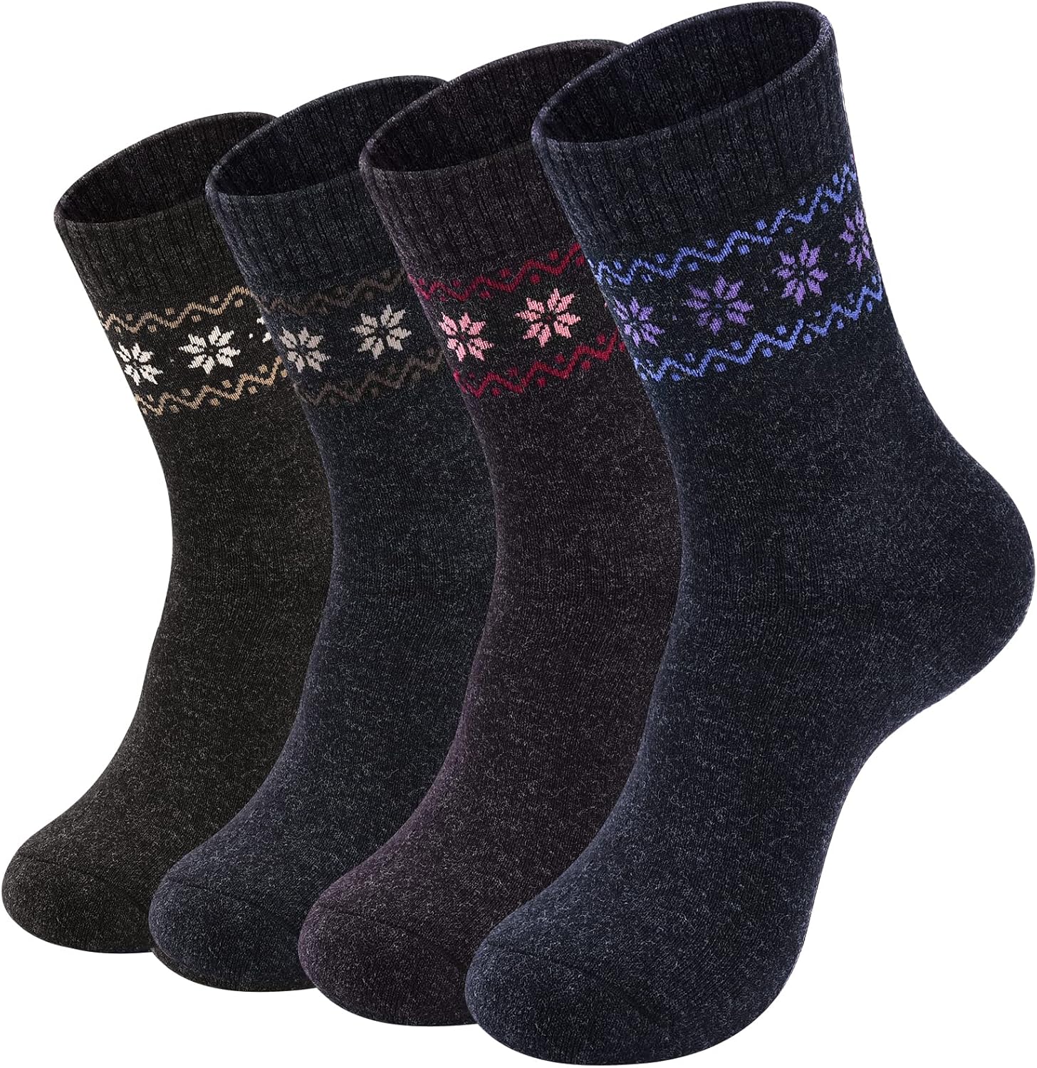 Pack of 4 Winter Warm Wool Socks Hiking Socks Knit Crew Socks for Women Soft and Comfortable