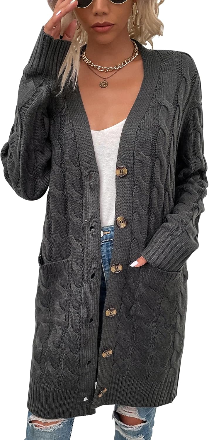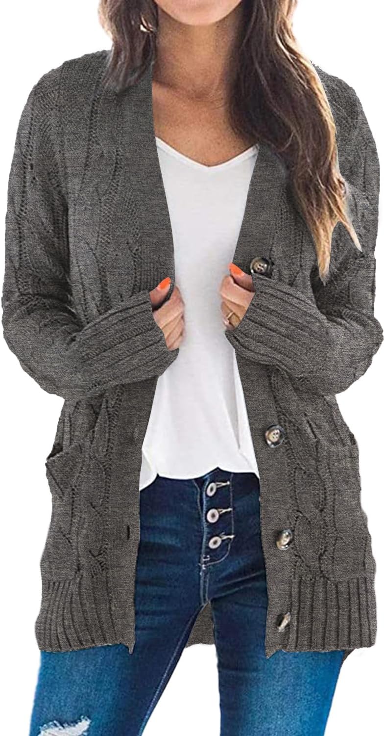 YACUN Women Cable Knit Cardigan Long Sleeve Button Down Sweaters with Pocket Knitwear