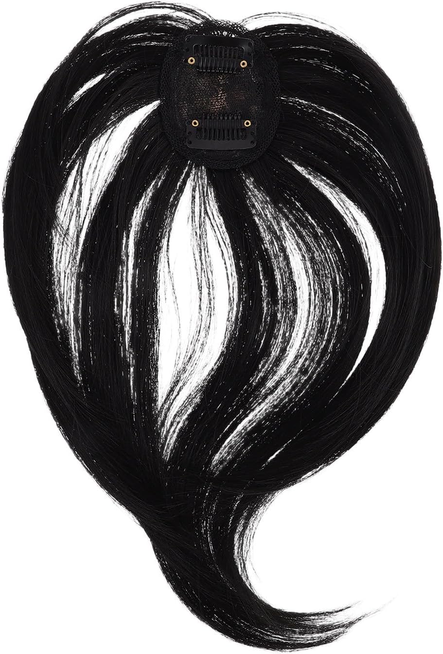 Black Long Wig with Curtain Bangs, Human Hair Lace Front Wig with 3D Top for Women Party and