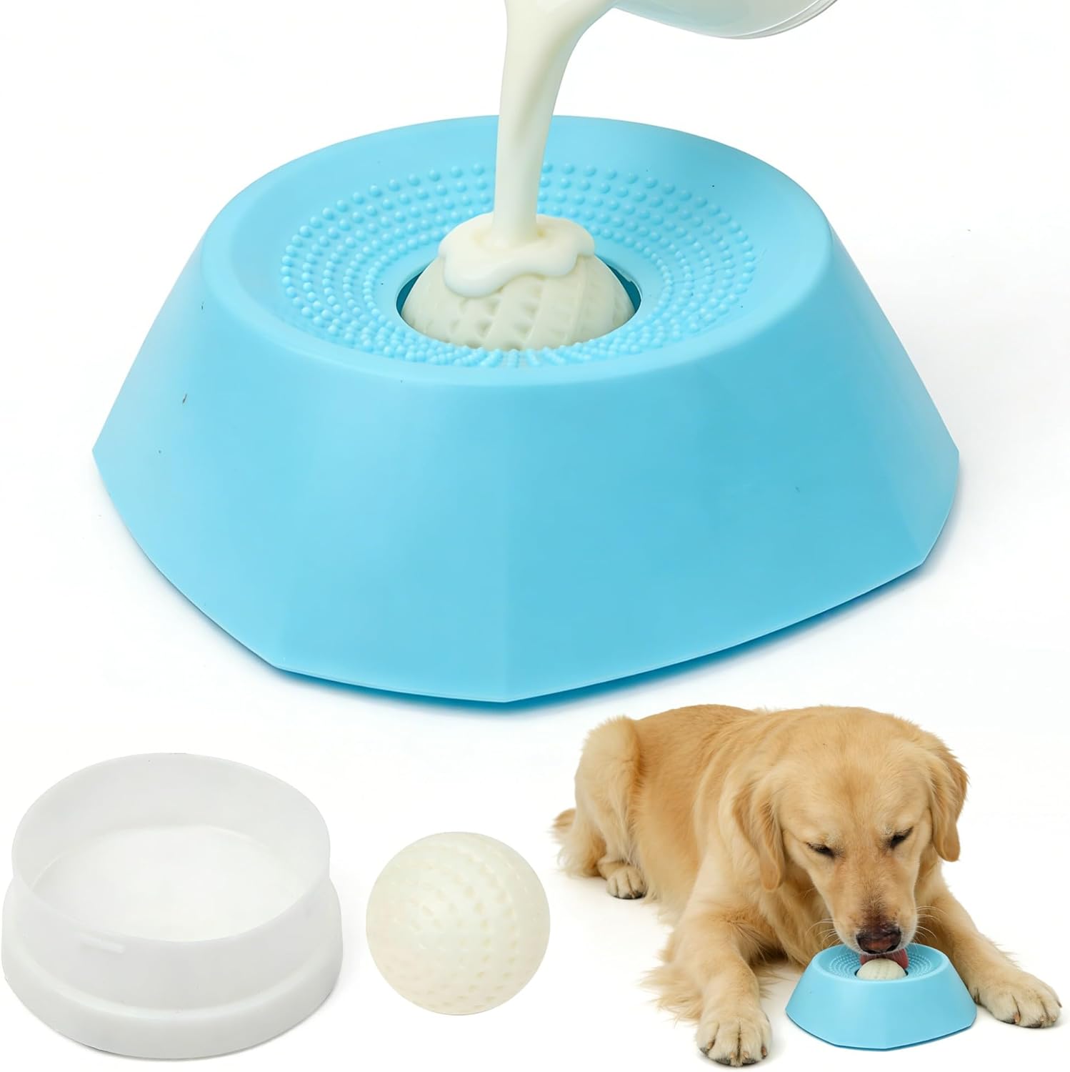 Upgraded Dog Licking Bowl - Octagonal Anti-Slip Slow Feeder Dog Bowl, Lick Sphere for Small Dogs Cats, Cat Licks Toys for Liquid Food, Anxieties Relief Healthy Diet Food Container Pet Accessories