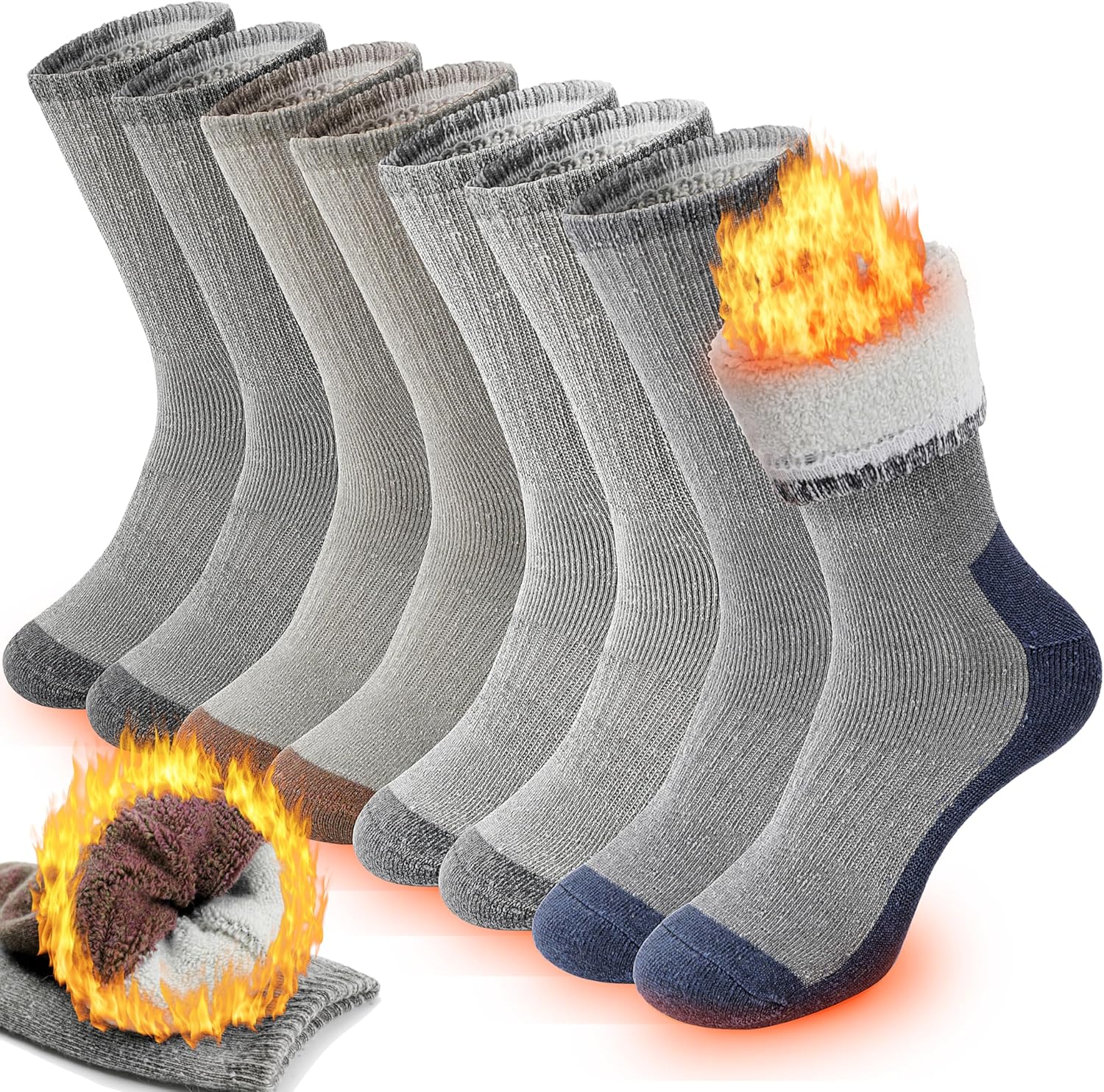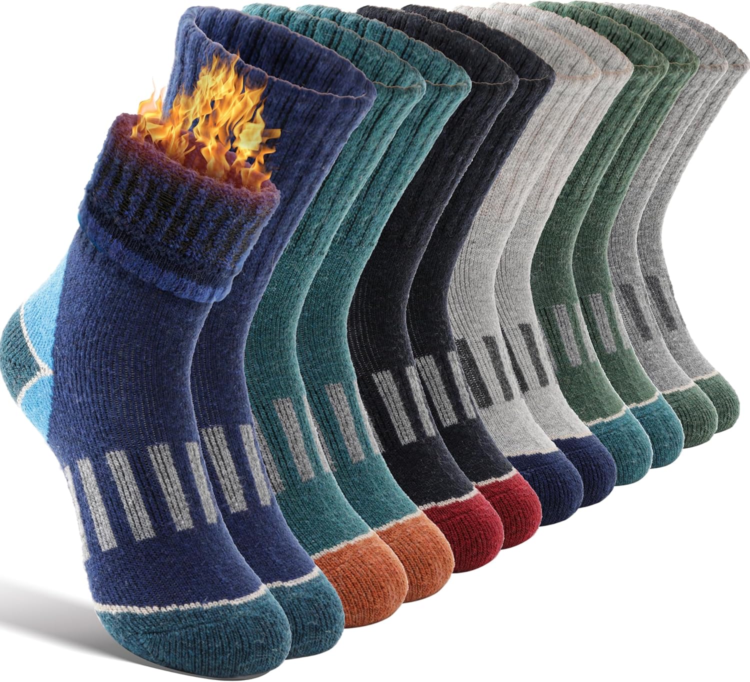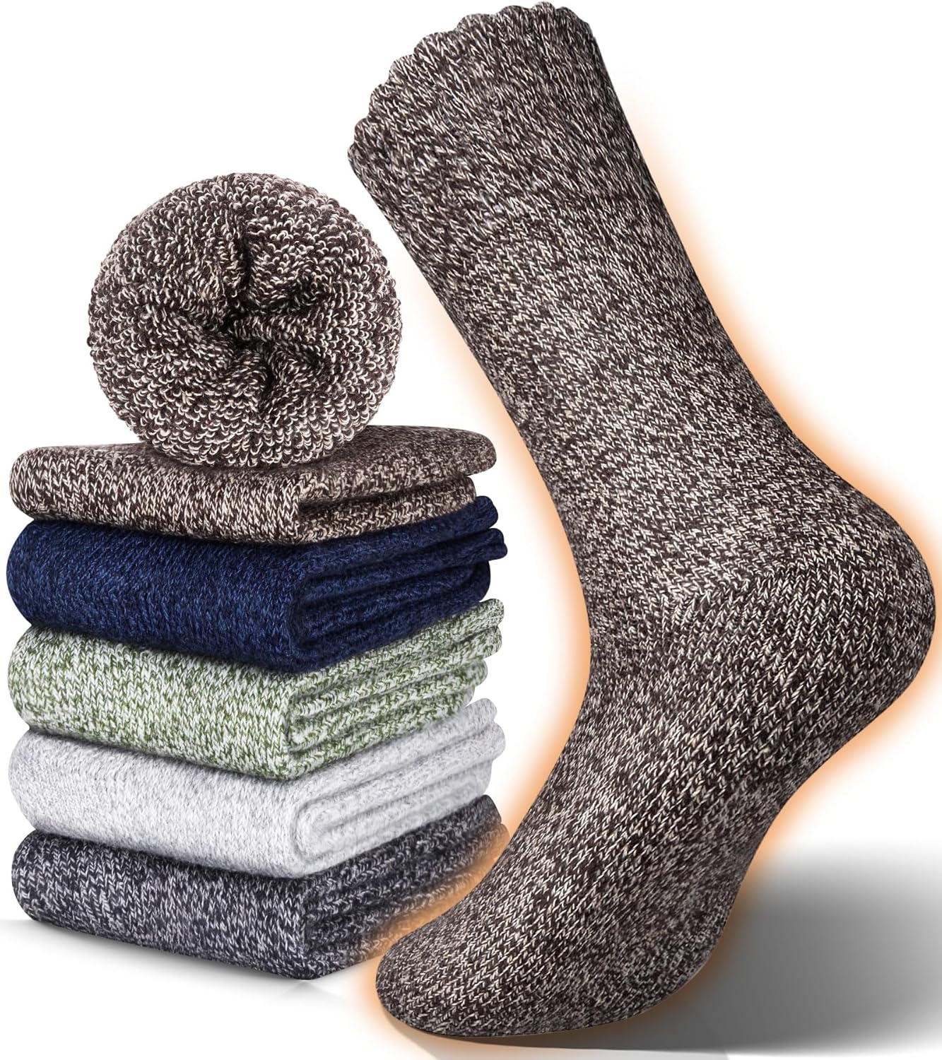 Men's Wool Socks 5 Pack Thermal Socks for Winter Soft Cozy Crew Socks for Hiking Cold Weather Thick Boot Socks