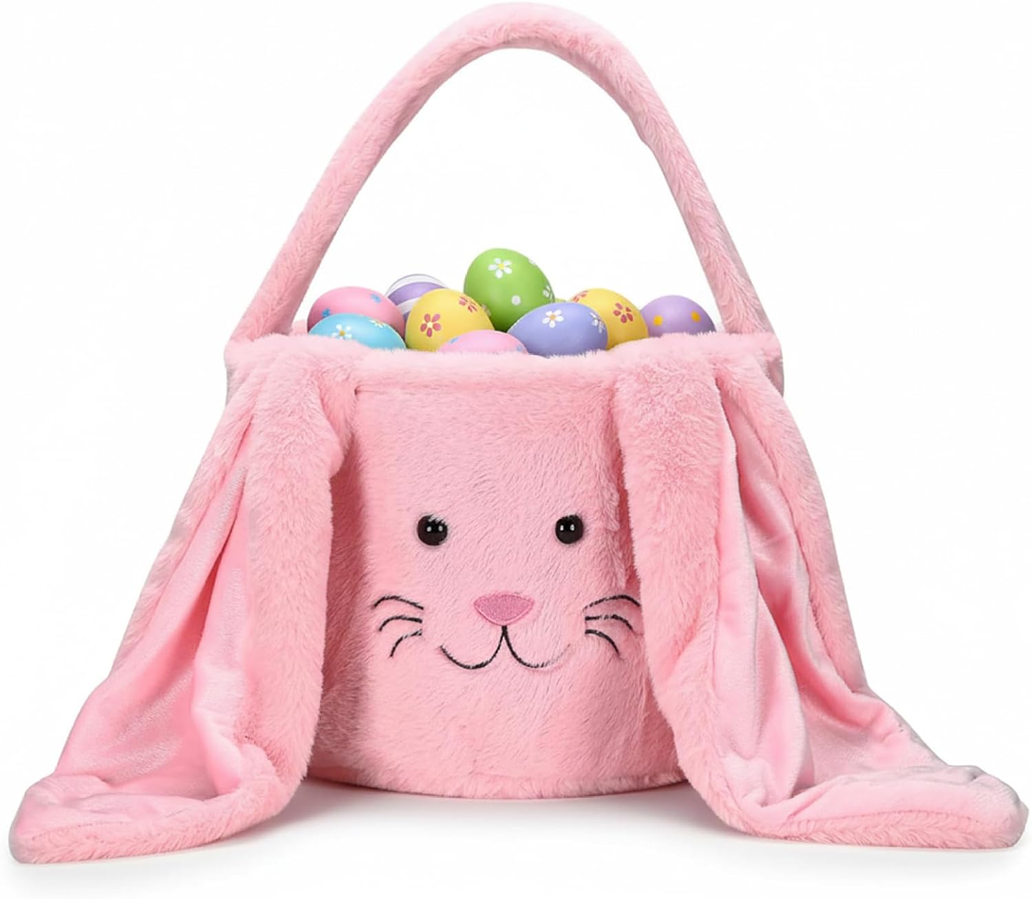 Soft Plush Bunny Easter Basket for Kids, Cute Easter Basket for Toddlers and Girls with Long Floppy Ears, Holds 40-70 Eggs for Egg Hunts