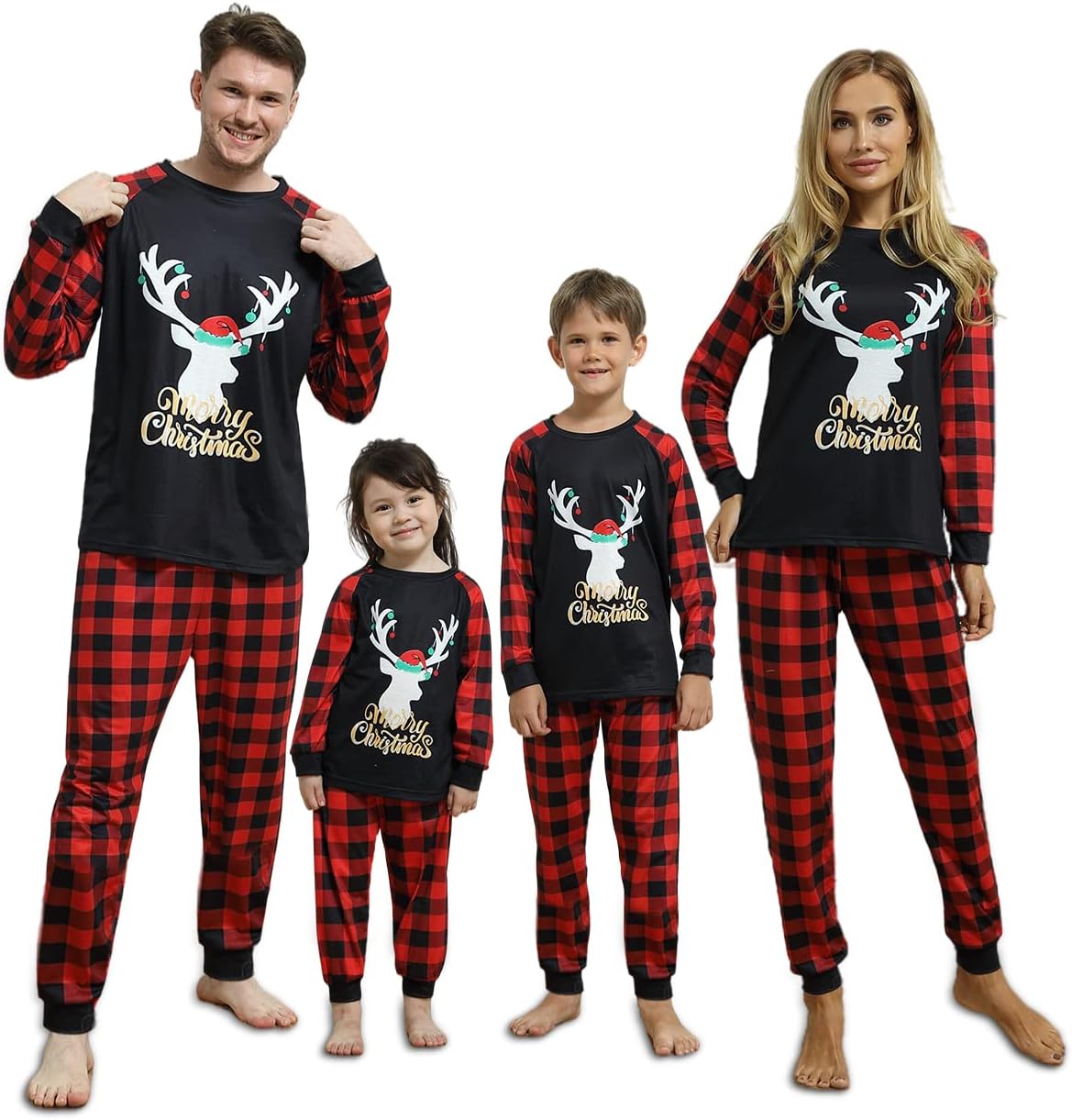 Matching Christmas Family Pajamas-Family Christmas Pajamas Set,Pyjama Noel Famille with Elk,Red Plaid Holiday PJ's