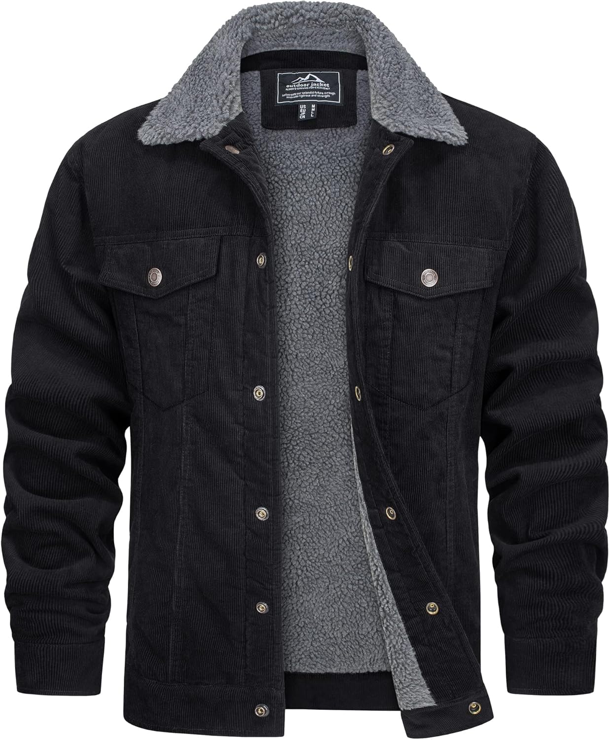TACVASEN Men's Corduroy Jacket Fleece Sherpa Lined Winter Coats Warm Cotton Casual Trucker Cargo Jacket with Multi Pockets