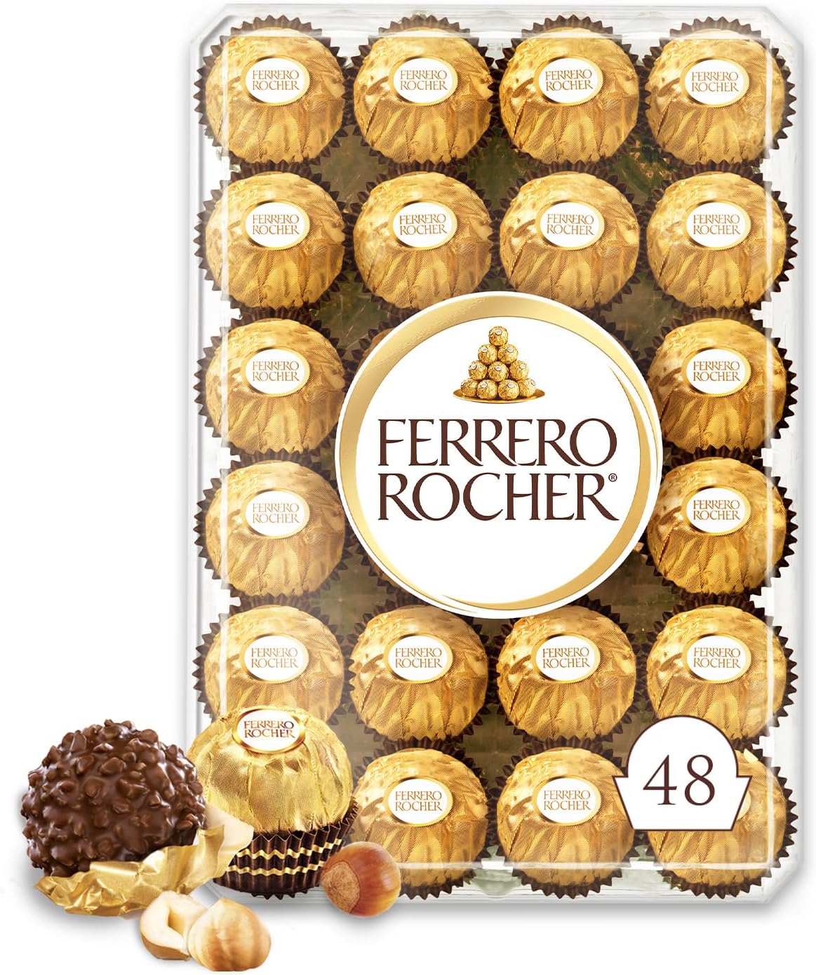 FERRERO ROCHER Fine Hazelnut Milk Chocolate Gift Box; 48 Count; Ideal Hostess Gift; 600g