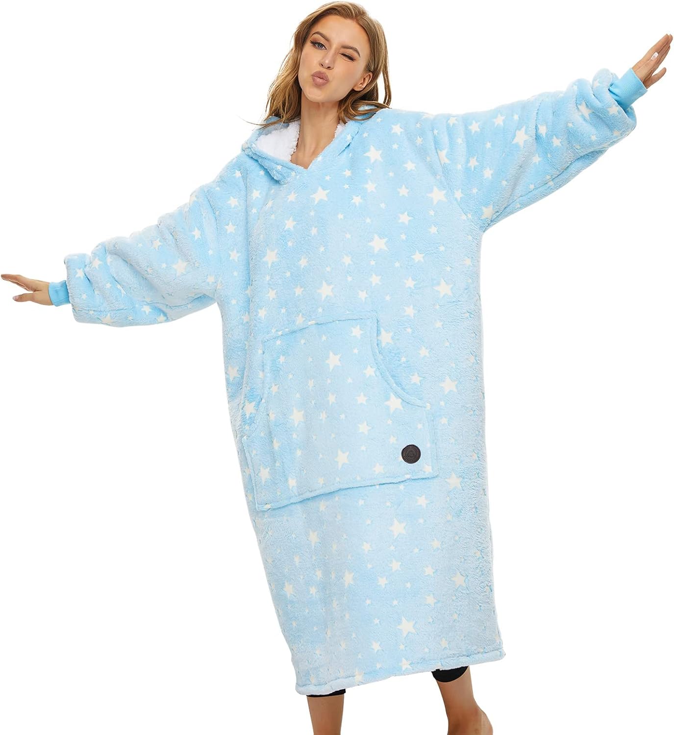 THREE POODLE Wearable Blanket Hoodie for Women, Oversized Long Sherpa Sweatshirt Blanket for Adults Men, Cozy Hooded Blankets, Gifts for Teen Girls Women Mom Sister