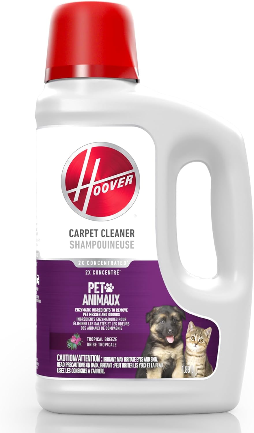 Hoover Pet Carpet Cleaner Solution, 64 oz., Tropical Breeze Scent, Deep Cleaning Carpet Shampoo Solution, Eliminates Urine Stains and Odors, Pair with Hoover Carpet Cleaner Machine AH31925CA