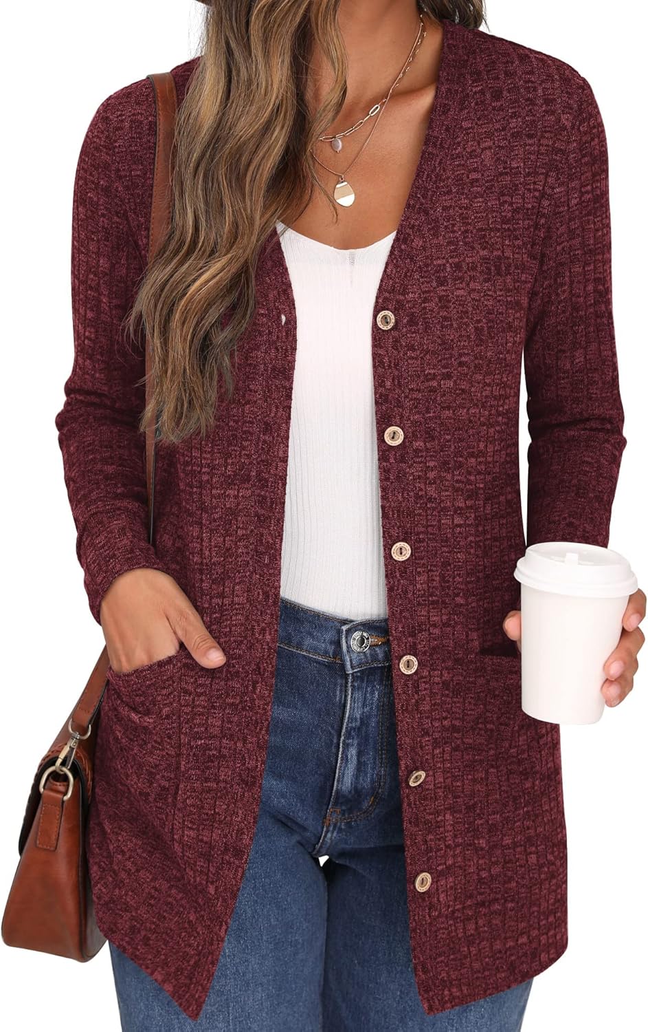 GRECERELLE Cardigan for Women Open Front Button Down Ribbed Knit Lightweight Ladies Sweater Outerwear with Pockets