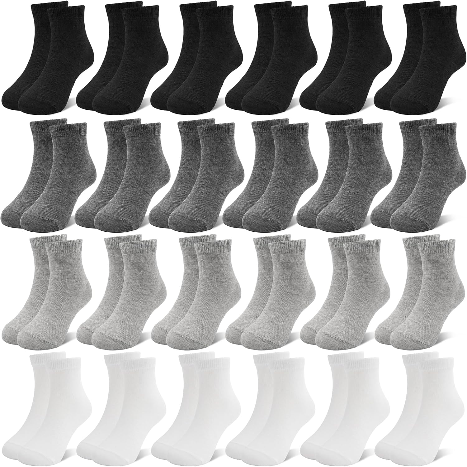 24 Pairs Kids Socks Boys Girls Socks, Crew Athletic Socks Mid Cut Casual Socks for Kids Toddler Children 1-13 Years