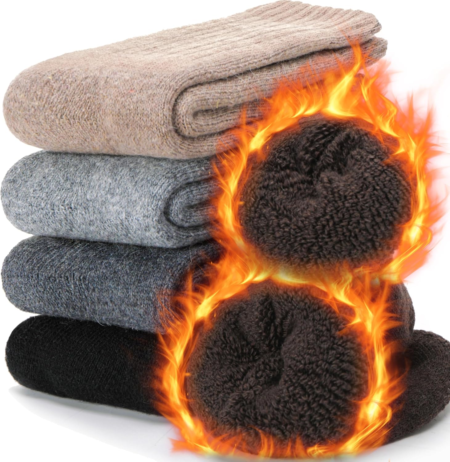 Josnown Warm Socks for Men, 5 Pairs Thick Thermal Winter Cozy Crew Boot Socks for Cold Winter, One Size 7-12