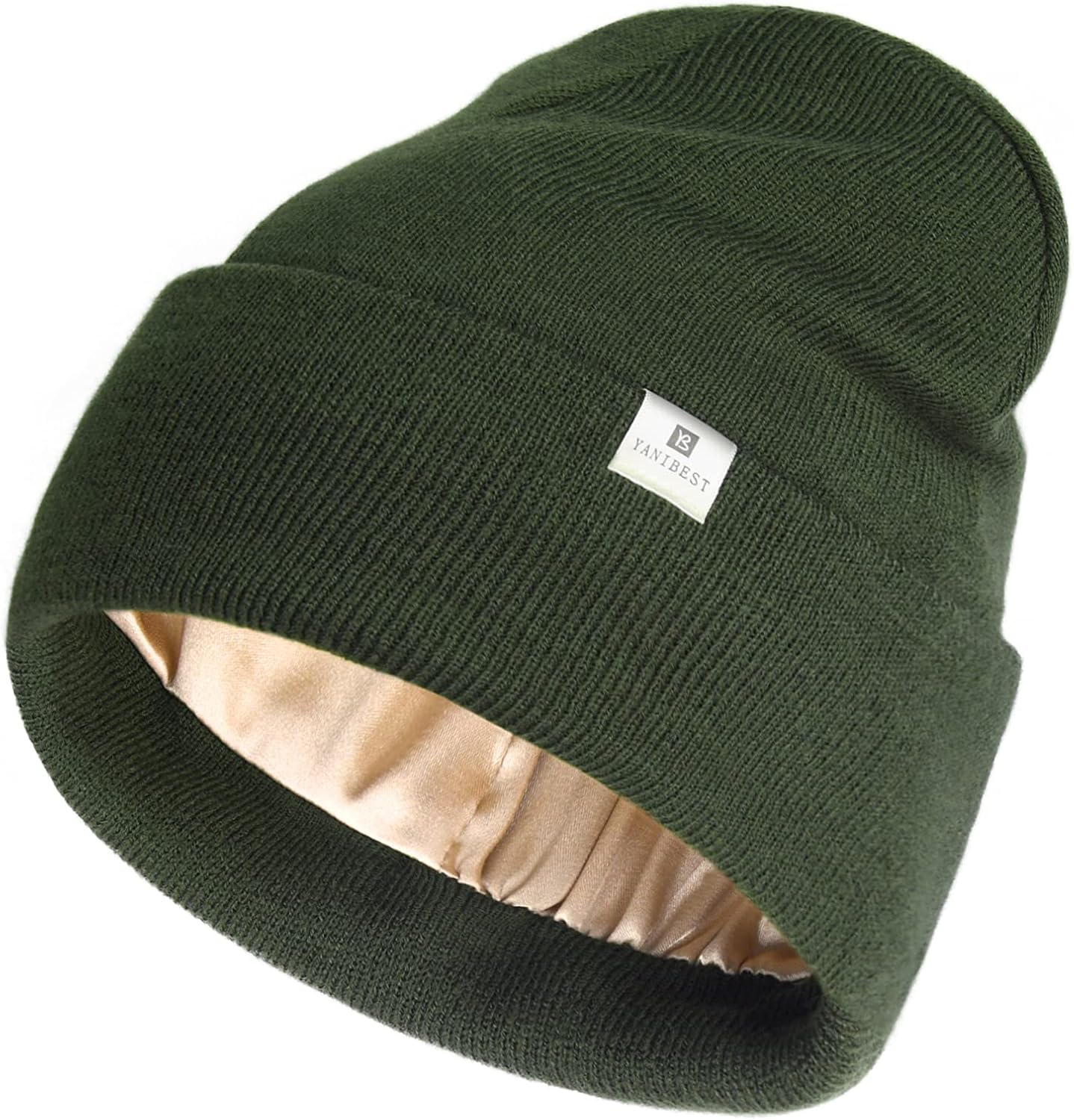 YANIBEST Womens Saitn Lined Knit Beanie Hat Acrylic Winter Hats for Women Men Silk Lining Soft Slouchy Warm Cuffed Beanie Hat