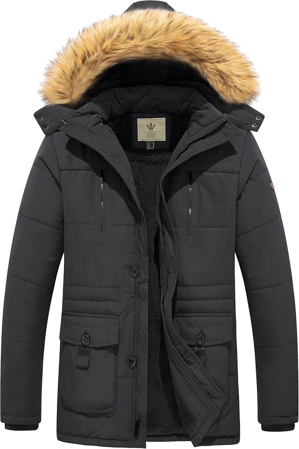 WenVen Men's Warm Winter Coat Quilted Parka Jacket with Fur Removable Hood