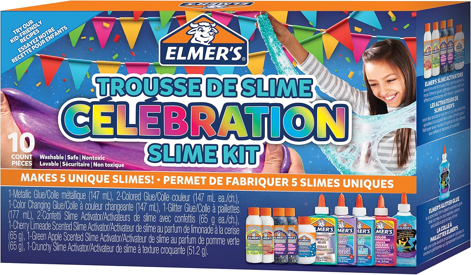 Elmer’s Celebration Slime Kit, Slime Supplies Include Assorted Magical Liquid Slime Activators and Assorted Liquid Glues, 10 Count