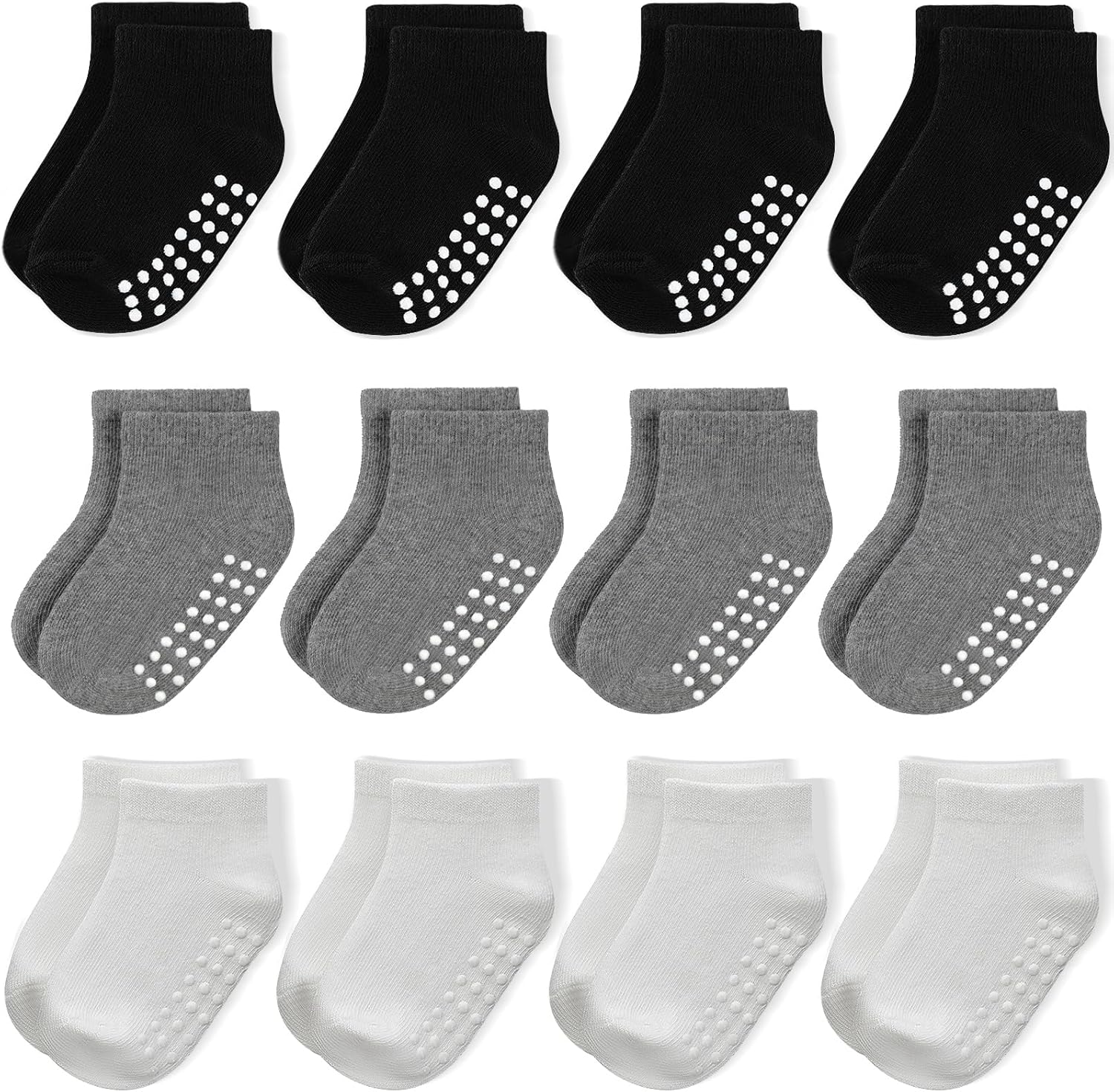 JAKIDAR 12 Pair Baby Toddler Socks Non-Slip Grip Cotton Ankle Socks for Boys Girls Non Skid Soles for Infants Kids
