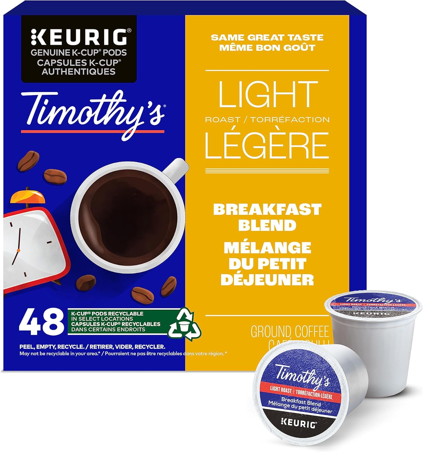 Timothy's Certified Breakfast Blend K-Cup Pods for Keurig Coffee Makers, Box of 48