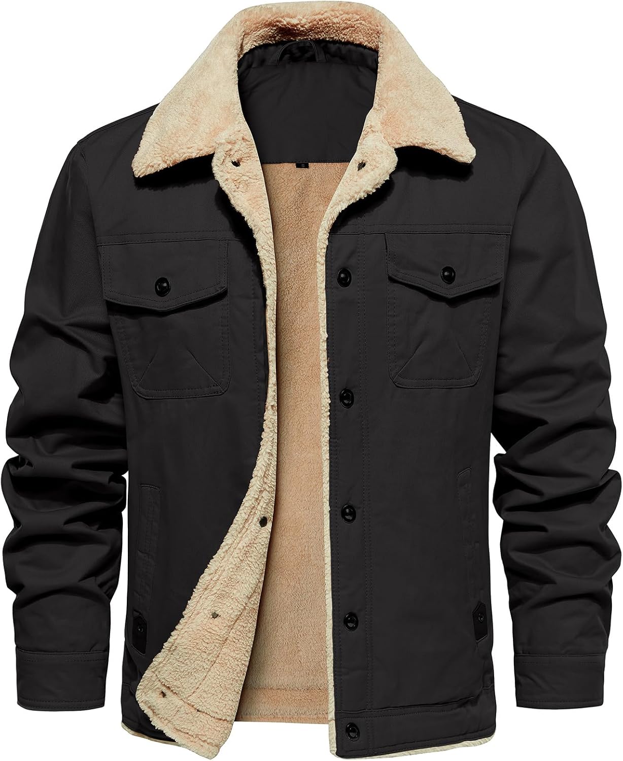 MANSDOUR Men's Winter Cargo Jacket Warm Cotton Fleece lined Sherpa Jackets Military Trucker Work Coat