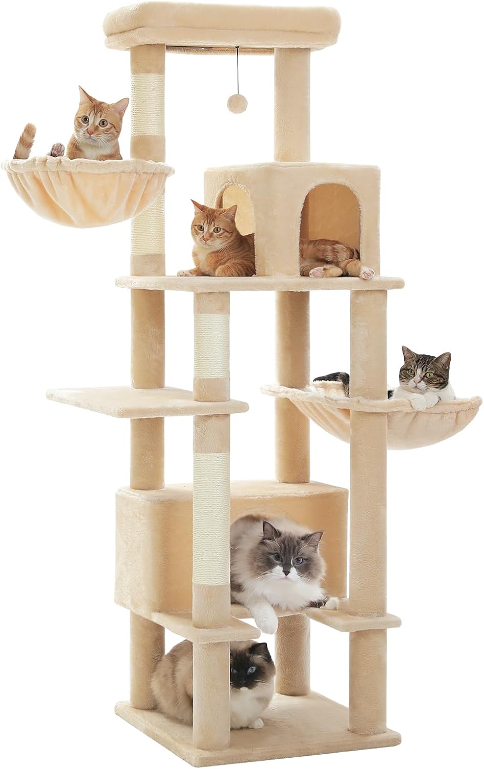 PAWZ Road Cat Tree for Large Cats, Large Cat Tower for Indoor Cats with Metal Frame Hammock, Spacious Cat Condo, Top Perch and Natural Sisal Scratching Posts and Soft Perch, Beige