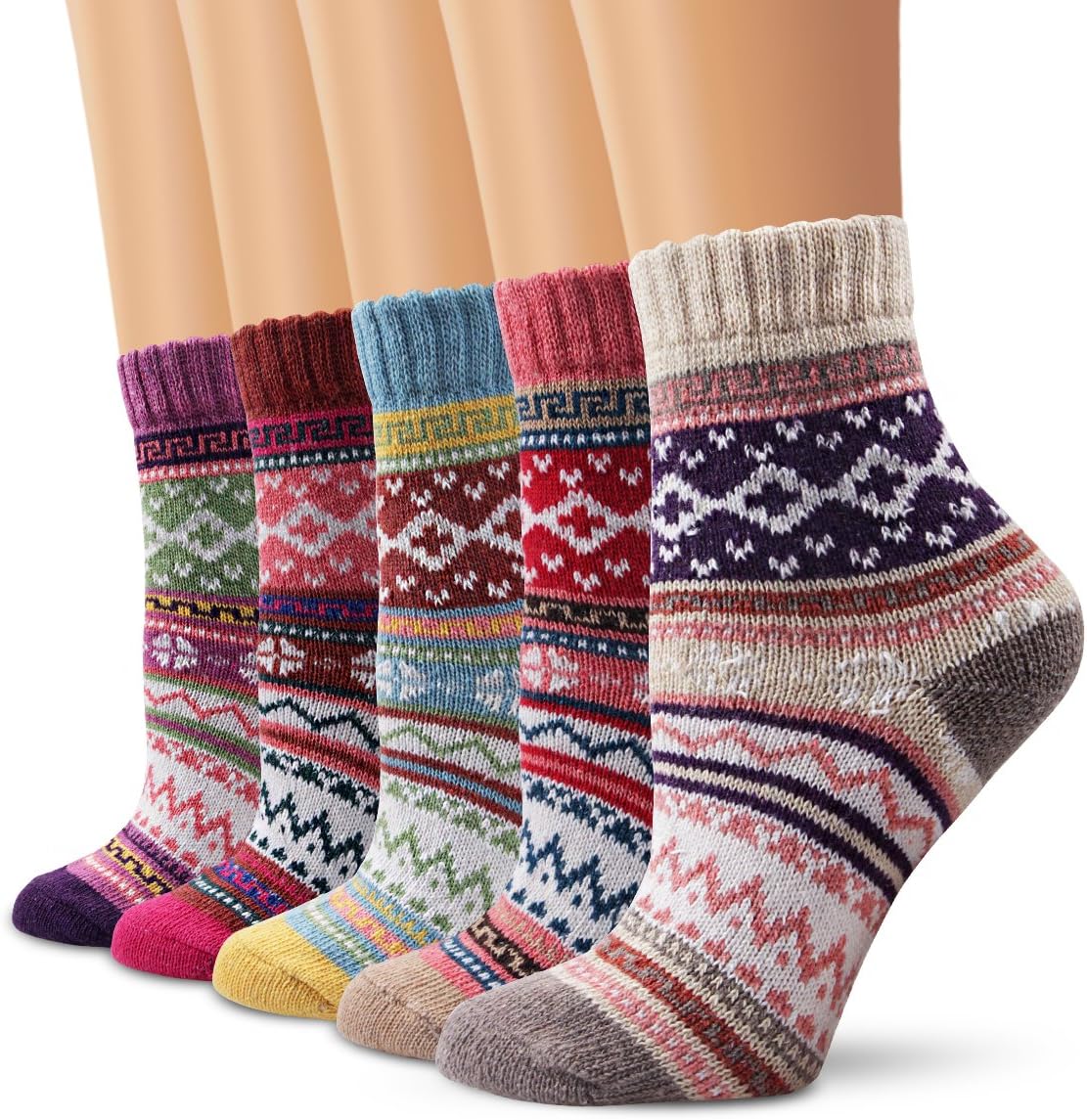 Winter Women Socks 5 Pairs Vintage Style Knit Wool Casual Socks Warm Socks