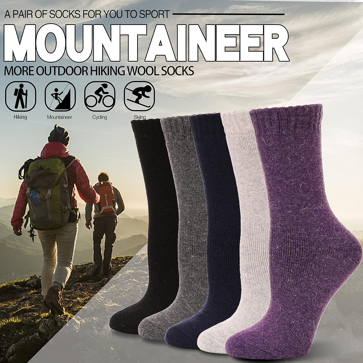EBMORE Merino Wool Hiking Socks for Women Thermal Winter Warm Thick Boot Cozy Crew Comfy Work Socks 5 Pairs